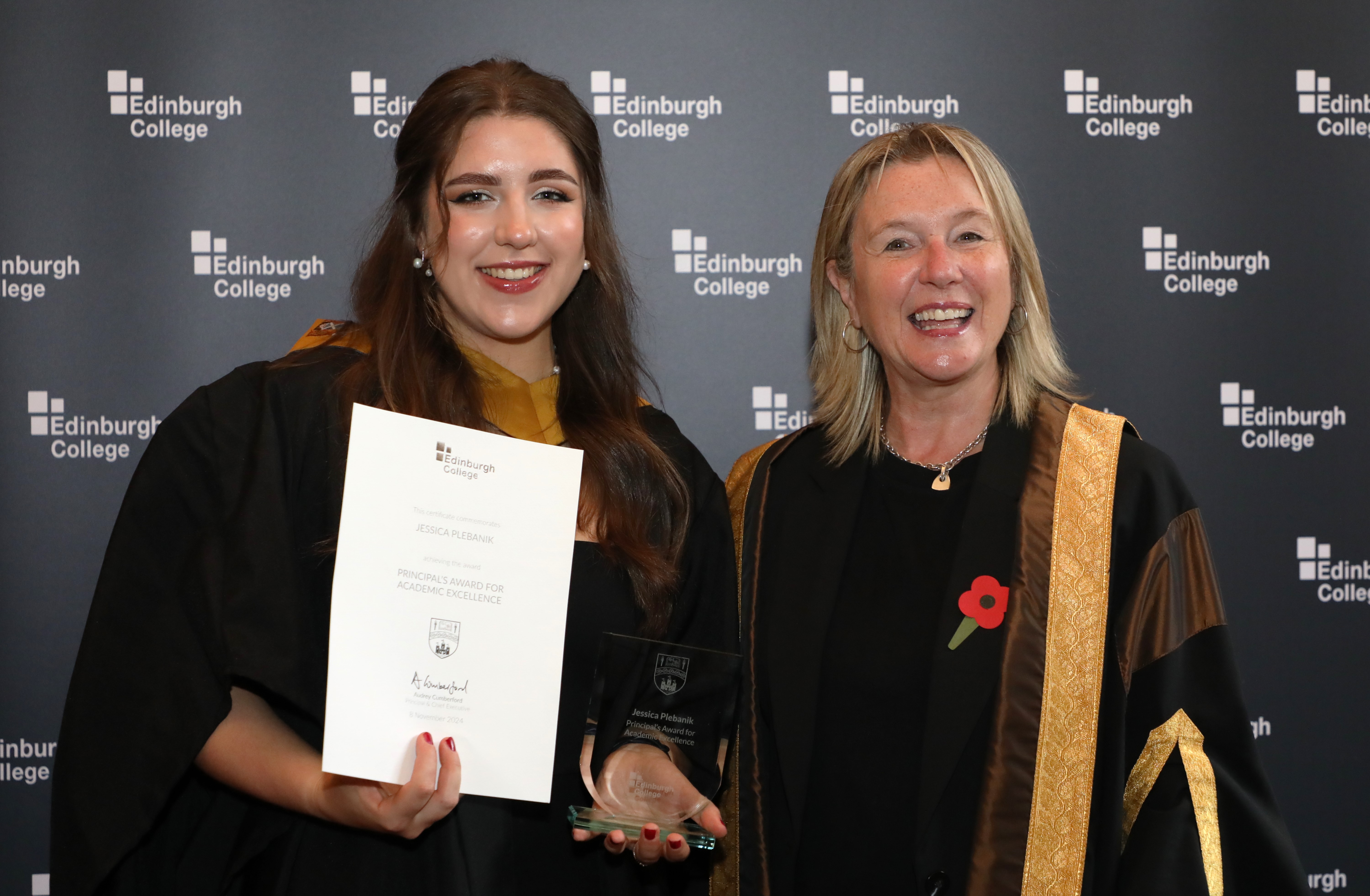 Twenty-four-year-old Jessica Plebanik came to College to further her knowledge and develop the culinary skills to one day own her own business, and now leaves with an SVQ 3 in Professional Cookery (Patisserie and Confectionery), as well as the Chair’s Award for Academic excellence.
