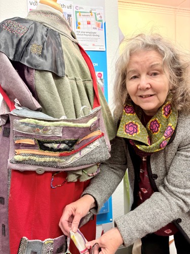Mature student Sandra Cameron of Edinburgh made an adaptive garment, specially designed for people with dementia. The outfit was in memory of her mum, Lily Bathgate who died from dementia in March 2025. It was created using a handbag, shoes, jacket and trousers.