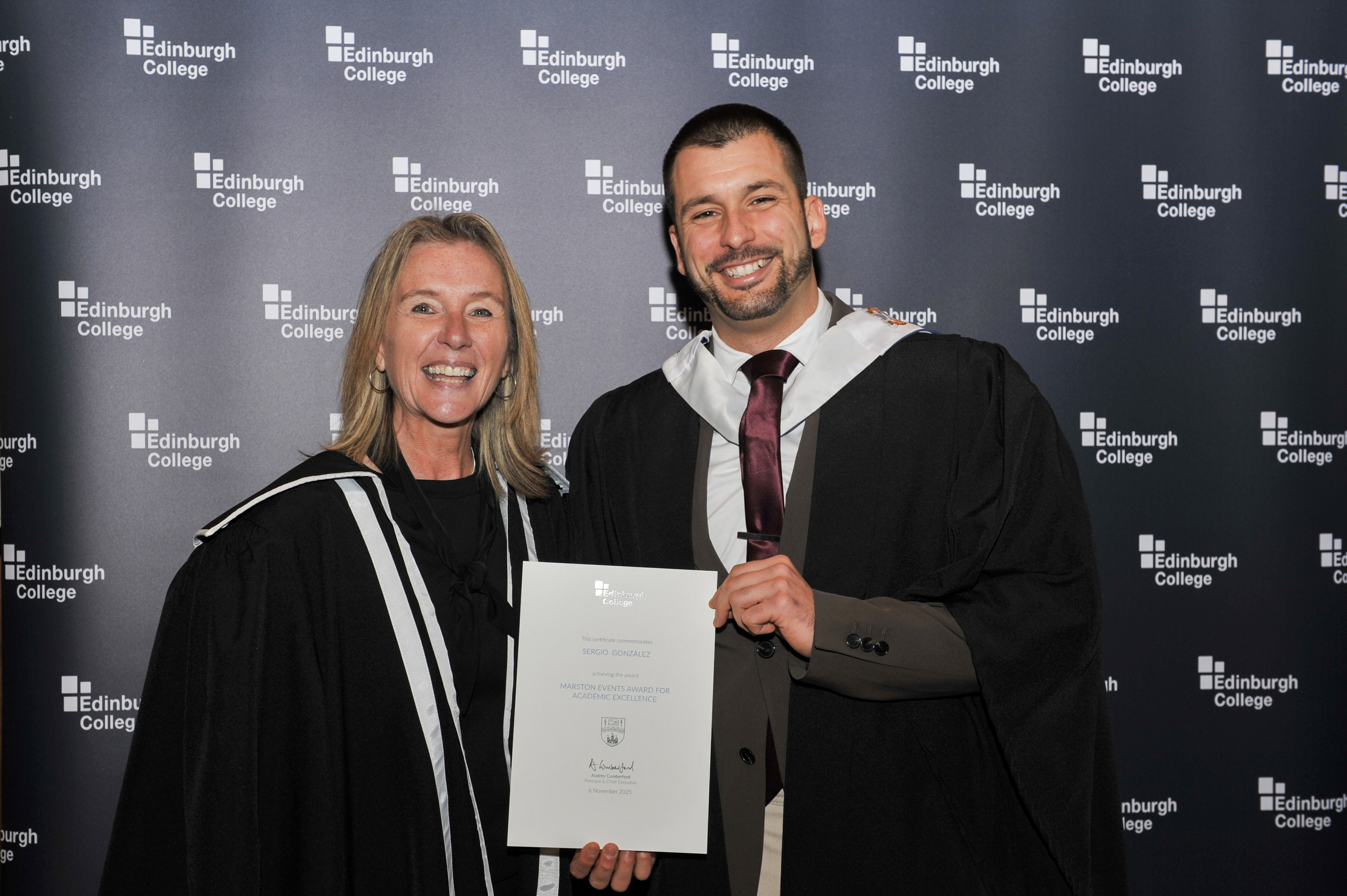 Across the three ceremonies, the College’s best-performing students were also commended by Principal Audrey Cumberford, receiving awards for academic excellence. Prizes were also awarded on behalf of the Edinburgh College Board of Management to students who have exceeded expectations throughout their College journey.